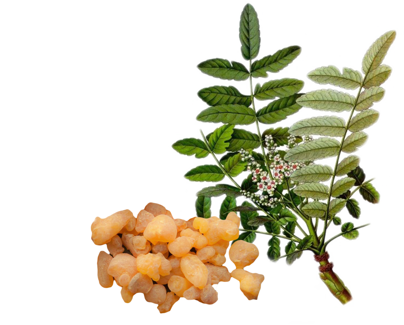 L'estratto di resina di incenso contiene molte sostanze attive come i terpeni, ma soprattutto gli acidi boswellici, noti per le loro proprietà antinfiammatorie e disinfettanti. Gli acidi boswellici hanno un effetto paragonabile a quello dell'acido acetilsalicilico dell'aspirina, ma non irritano il tratto digestivo e non fluidificano il sangue.