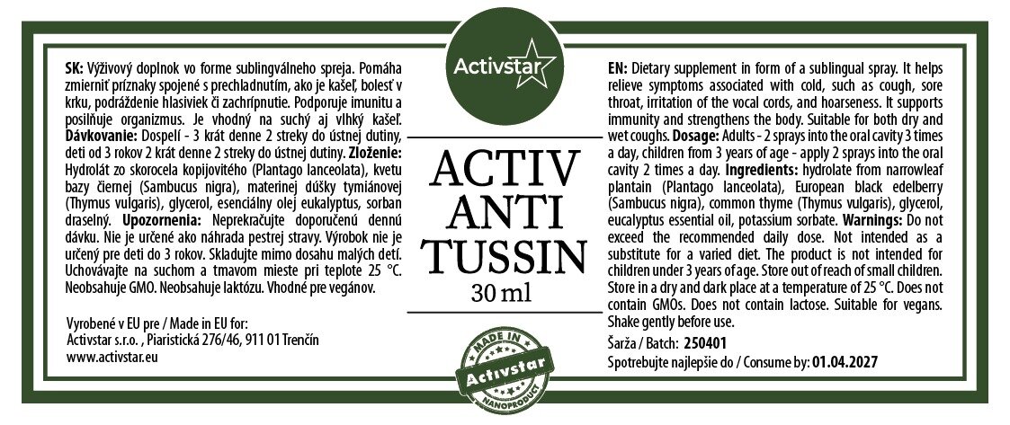 Salve, la mia esperienza personale con ACTIV TUSSIN spray per la tosse, ho avuto la tosse 4-5 volte all'anno e le gocce per la tosse in farmacia non funzionavano più. Subito dopo aver usato lo spray mi sono sentita sollevata, l'irritazione della tosse si è attenuata e porto il flacone in borsa se mi capita di tossire da qualche parte. Inoltre, lo spray antidolorifico ACTIVHELP è eccellente e mi ha aiutato con il dolore al petto causato dalla tosse quando mi facevano male le costole e i muscoli addominali. Irena