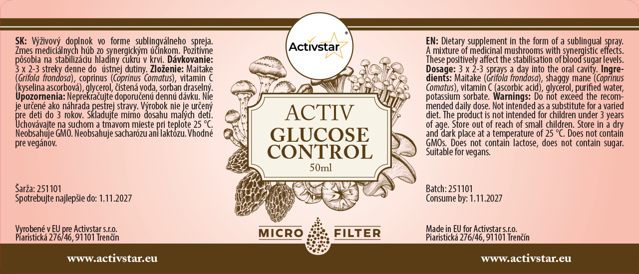 Activ Glucose Control è un integratore alimentare in forma di spray sublinguale che contiene una miscela unica di funghi medicinali con effetto sinergico. Contribuisce alla stabilizzazione dei livelli di zucchero nel sangue e alla vitalità generale dell'organismo.