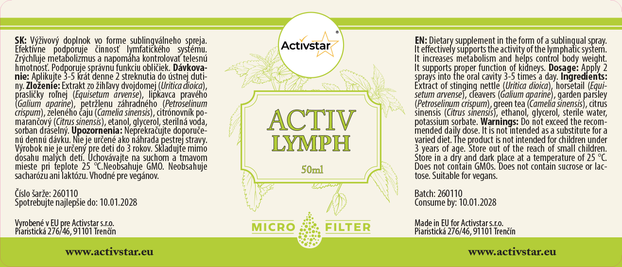 Il sistema linfatico è parte integrante della nostra salute. Si occupa del trasferimento dei globuli bianchi, delle sostanze nutritive e degli ormoni e svolge un ruolo importante nella disintossicazione dell'organismo. Concedetevi una cura naturale con Activ Lymph spray e sentitevi più leggeri e in salute!