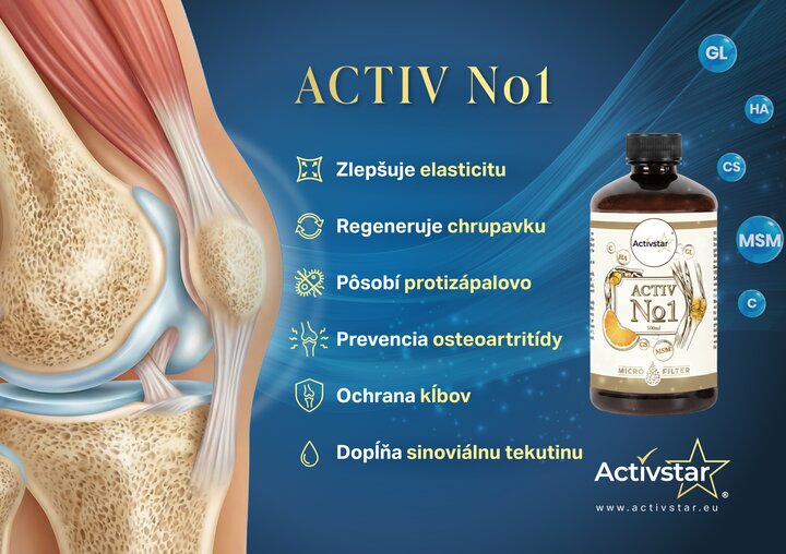 Nutrizione articolare liquida con acido ialuronico, glucosamina, condroitina e MSM. Sostiene la cartilagine e la mobilità. ACTIV No1 500 ml.
