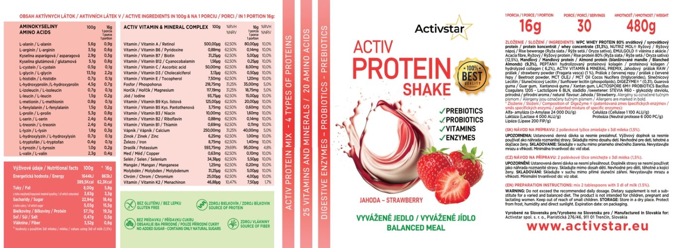 Activ Protein shake Strawberry - La vostra dose quotidiana di energia, salute e gusto delizioso!